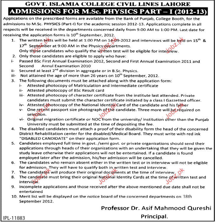 Admission in MSc Psychology in Govt Islamia College Civil Lines Lahore in Lahore Read newspaper ad for exact details.