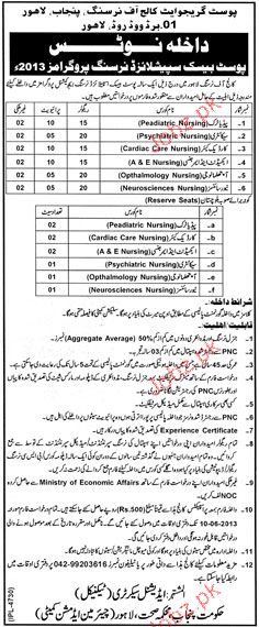 Admission in Nursing Course in Postgraduate College of Nursing Punjab Lahore Read newspaper ad for exact details.