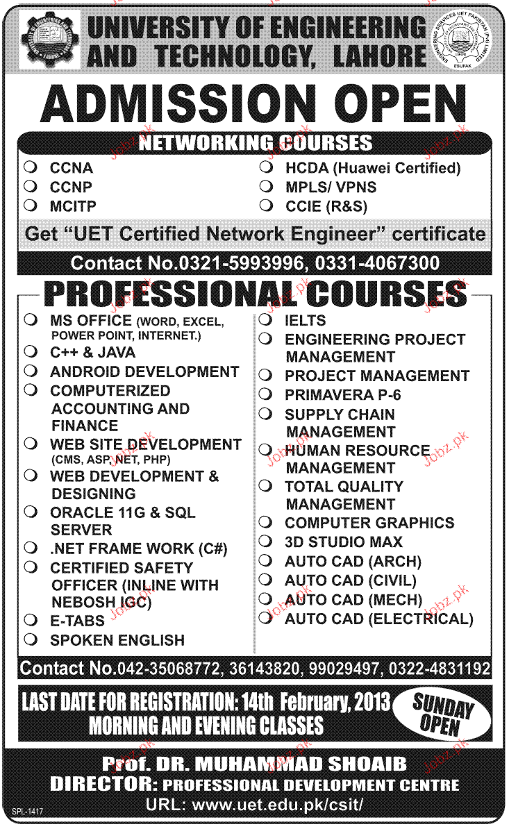 Admission in Professional Courses in University of Engineering and Technology in Lahore Read newspaper ad for exact details.