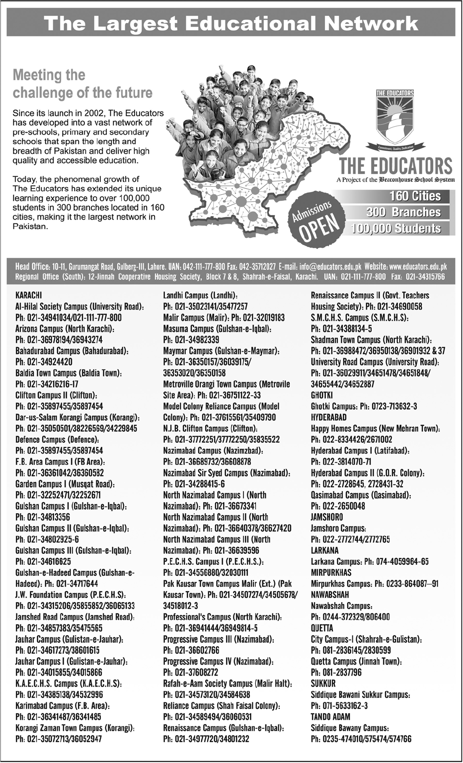 Admission in The Educators School,Karachi Read newspaper ad for exact details.