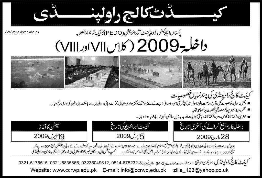 Admission Open Cadet College Rawalpindi
