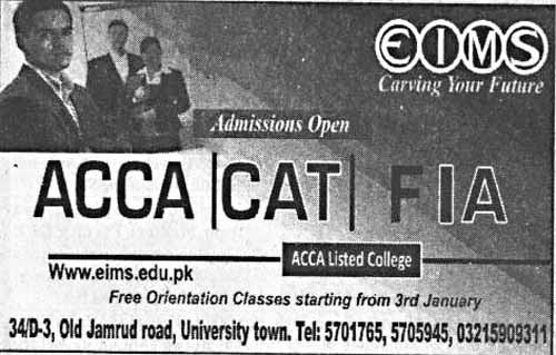 Admission Open in ACCA, CAT and FIA in EIMS Peshawar Read newspaper ad for exact details.