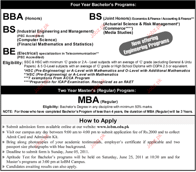 Admission Open in BBA, BS, BE, BS in Karachi Read newspaper ad for exact details.