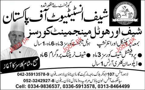 Admission Open in Chef Institute of Pakistan in Chef & Hotel Management Courses in Lahore Read newspaper ad for exact details.