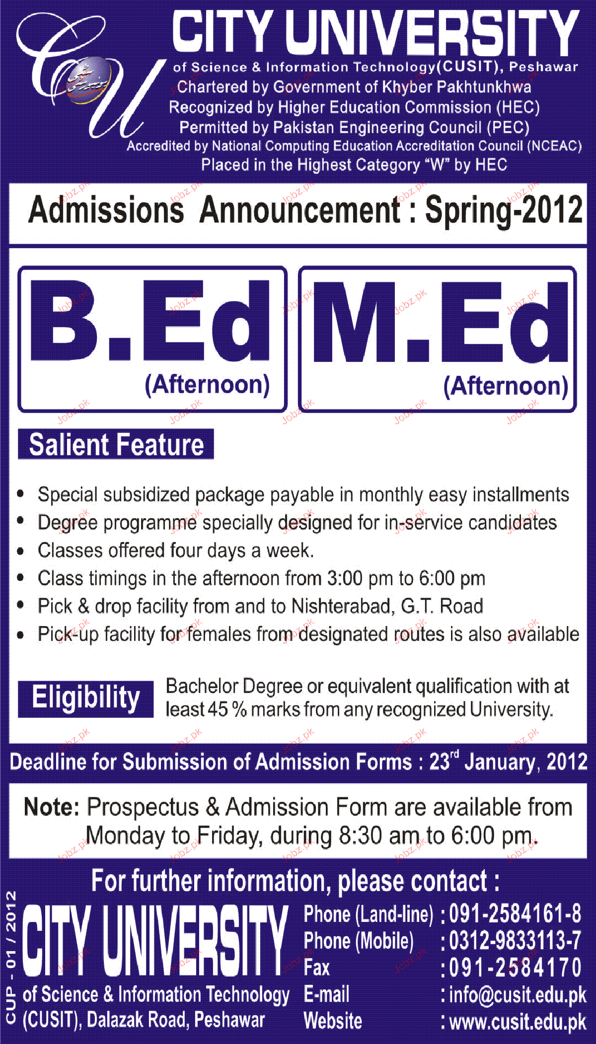 Admission Open in City University in Peshawar Read newspaper ad for exact details.