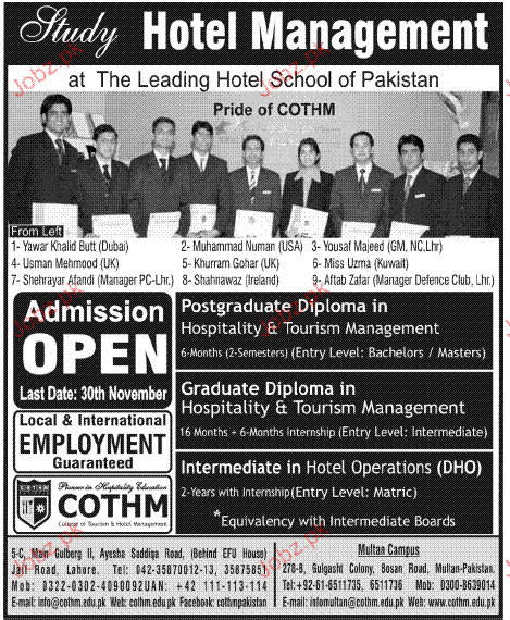 Admission Open in College of Tourism & Multimedia in Lahore Read newspaper ad for exact details.