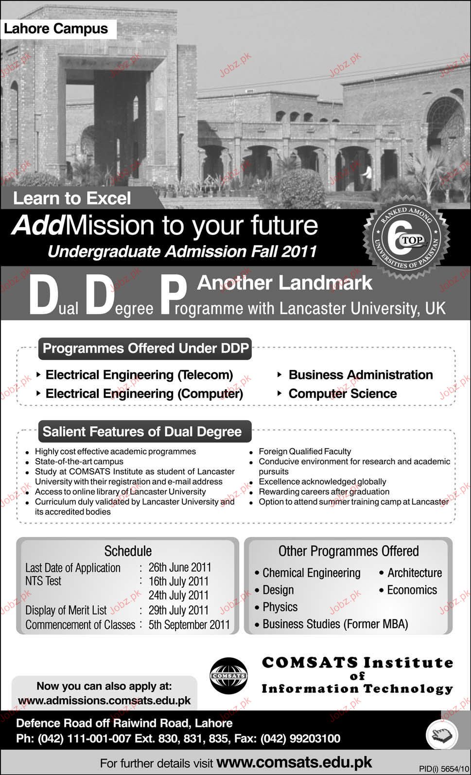 Admission Open in Comsats Institute of Information Technology in Islamabad Read newspaper ad for exact details.
