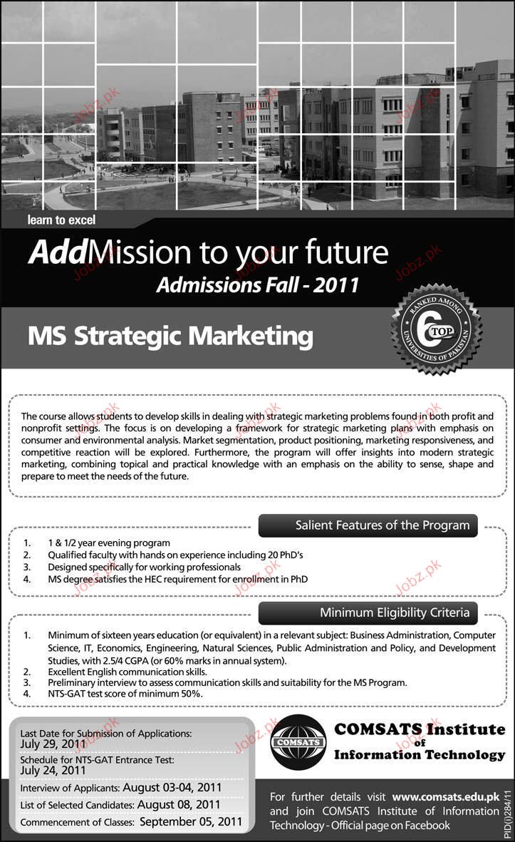 Admission Open in Comsats Institute of Information Technology in Islamabad Read newspaper ad for exact details.