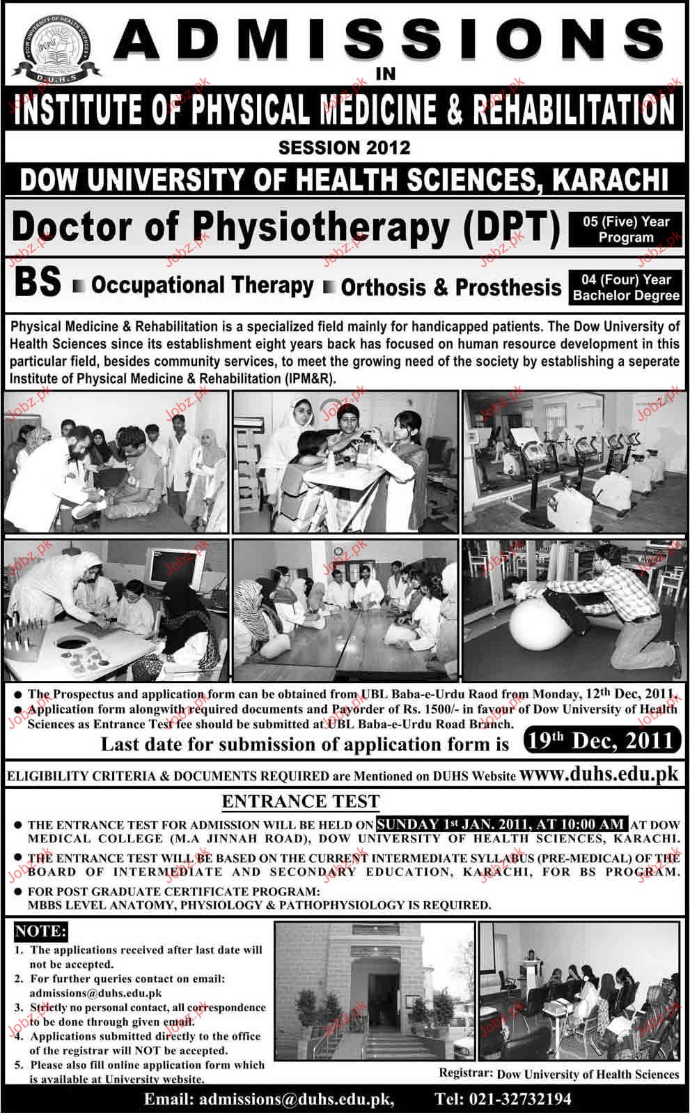 Admission Open in DOW University of Health Sciences in Karachi Read newspaper ad for exact details.
