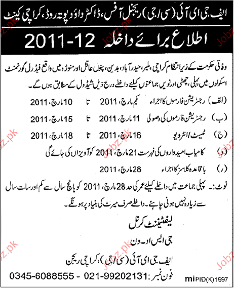 Admission Open in Class I, VI & IX in D Federal Government School in Different Cities of Sindh Read newspaper ad for exact details.