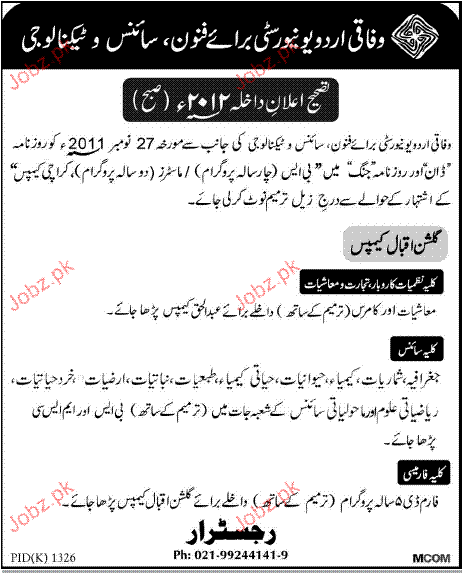 Admission Open in Federal Urdu University of Arts & Sciences in Karachi Read newspaper ad for exact details.