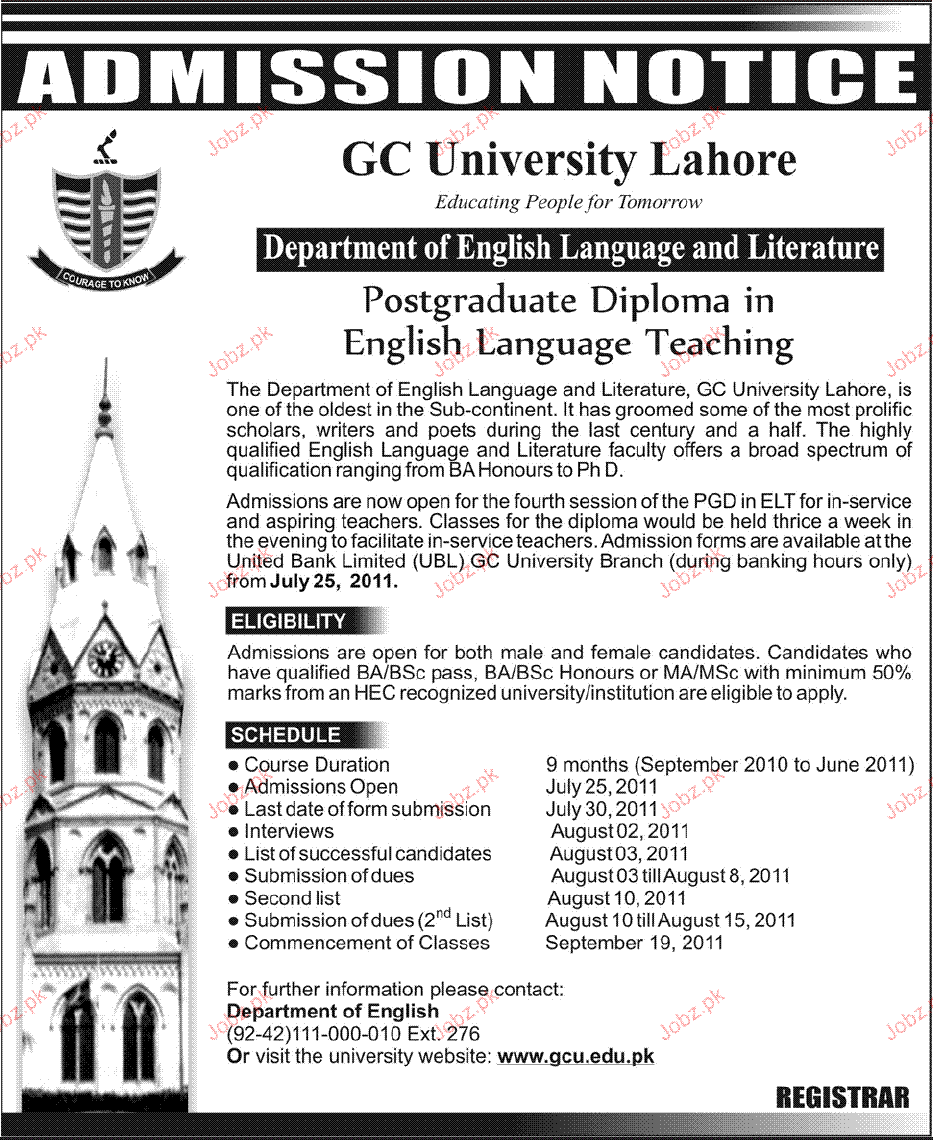 Admission Open in GC University in Lahore Read newspaper ad for exact details.