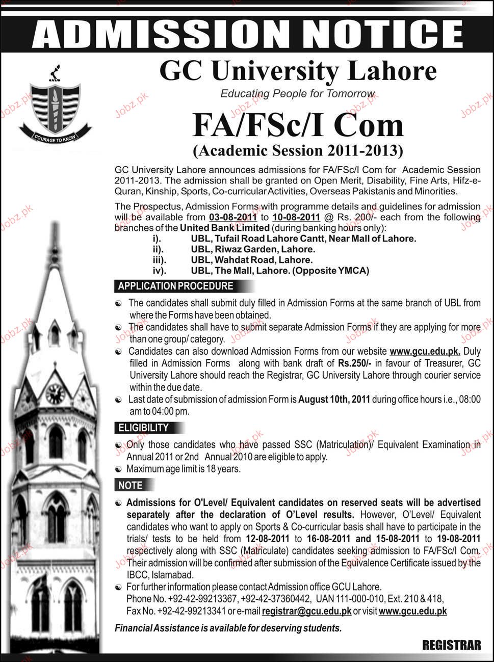 Admission Open in GC University in Lahore Read newspaper ad for exact details.