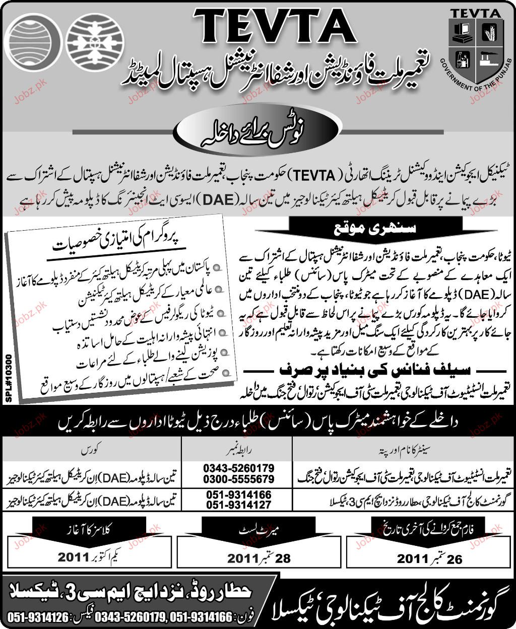 Admission Open in Govt College of Technology Taxla Read newspaper ad for exact details.