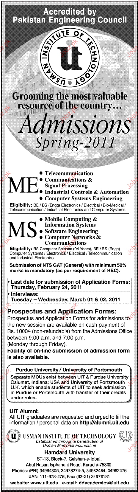 Admission Open in ME & MS in Hamdard University Karachi Read newspaper ad for exact details.