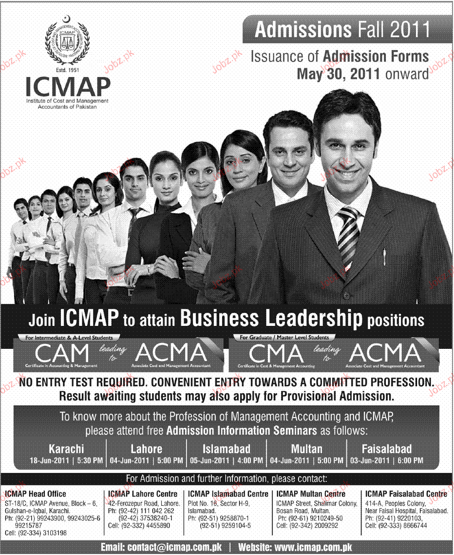 Admission Open in ICMAP in Karachi Read newspaper ad for exact details.