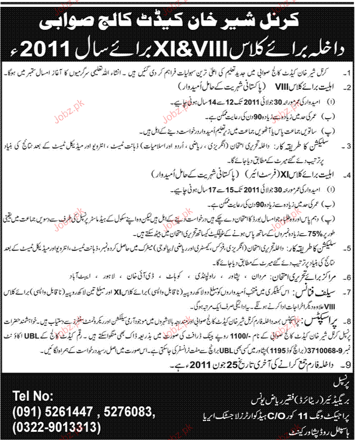 Admission Open in Kirnal Sher Khan Cadet College in Swabi Read newspaper ad for exact details.