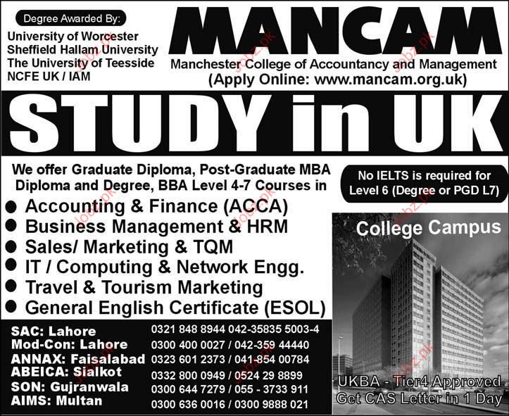 Admission Open in Accounting & Finance, Business Management, Sales & marketing and IT Computing & Network in Manchester College of Accountancy and Management Uk Read newspaper ad for exact details.