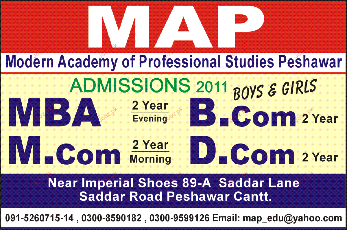 Admission Open in Modern Academy of Professional Studies in Peshawar Read newspaper ad for exact details.