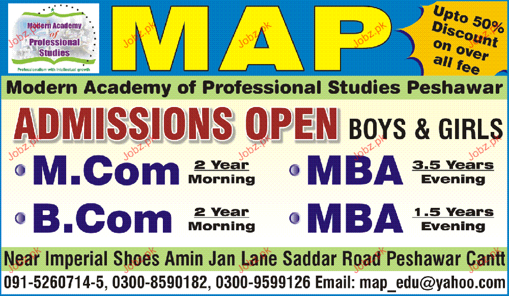 Admission Open in Modern Academy of Professional Studies in Peshawar Read newspaper ad for exact details.