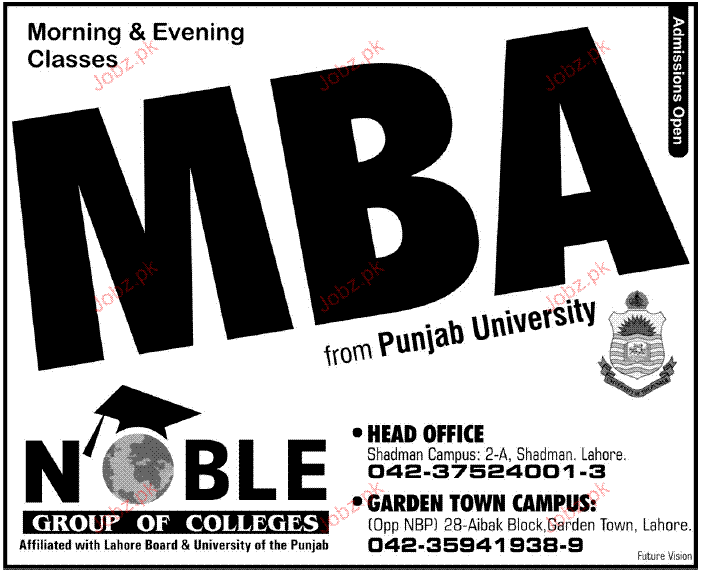 Admission Open in Nobel Group of Colleges in Lahore Read newspaper ad for exact details.