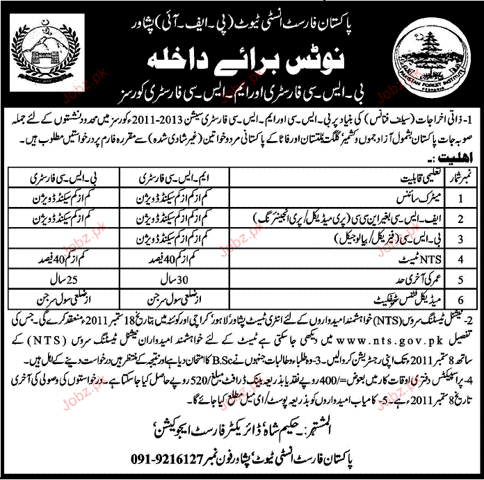 Admission Open in Pakistan Forest Institute PFI ij Peshawar Read newspaper ad for exact details.