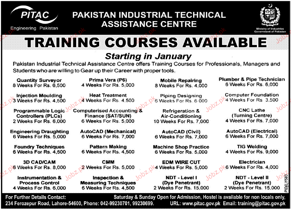 Admission Open in Pakistan Industrial Technical Assistance Center in Different Industrial Technology in Lahore Read newspaper ad for exact details.