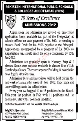 Admission Open in Pakistan International Schools & College in Abbottabad Read newspaper ad for exact details.