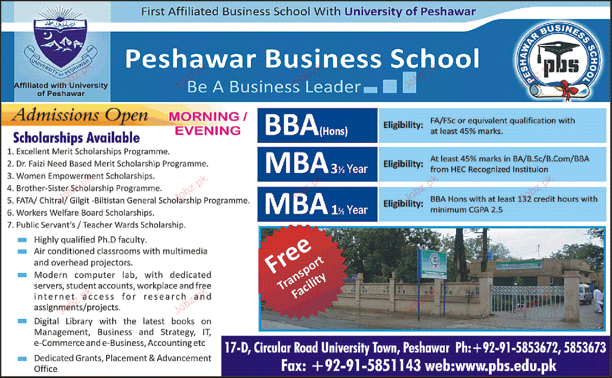 Admission Open in Peshawar Business School in Peshawar Read newspaper ad for exact details.