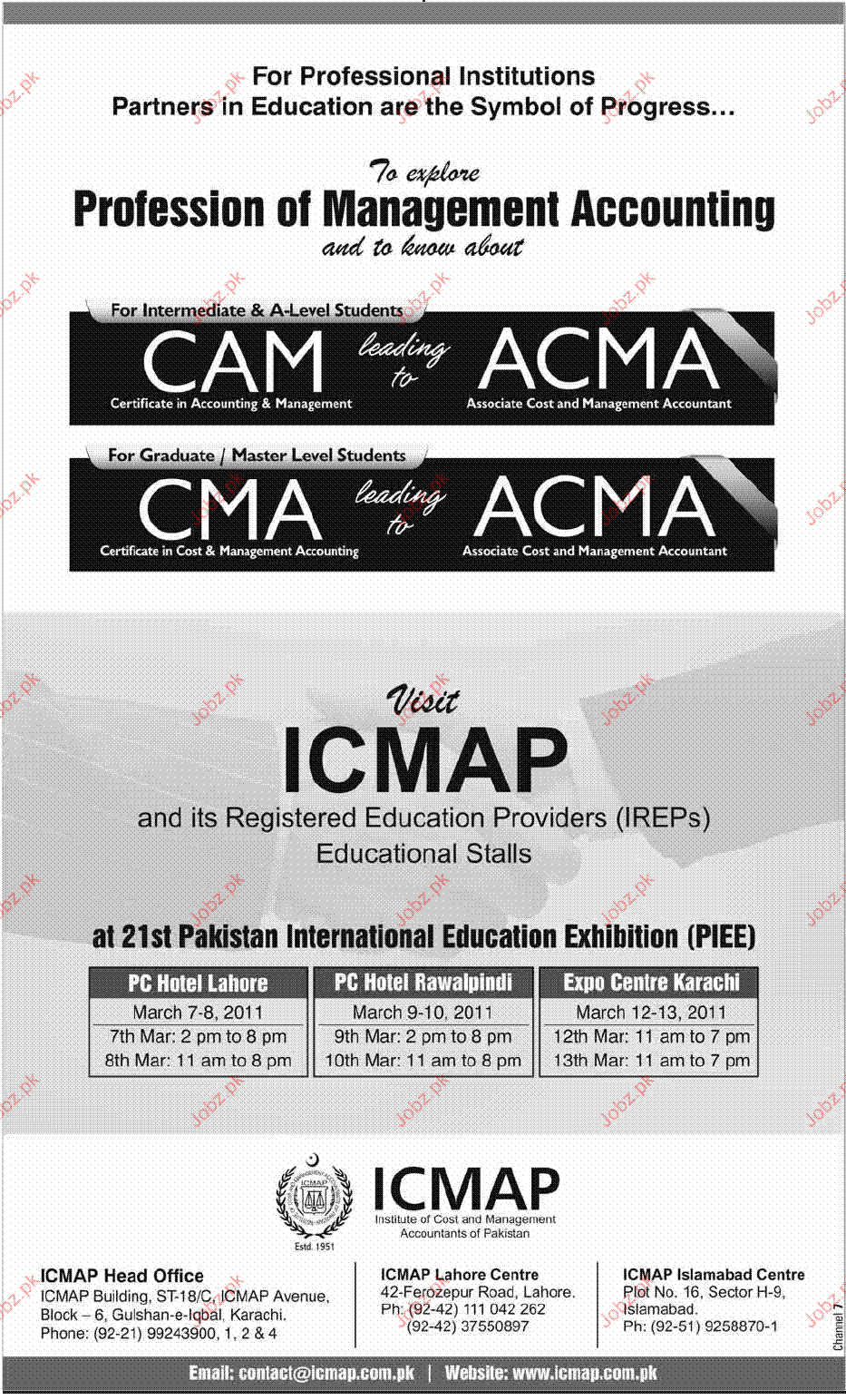 Admission Open in CAM and ACMA Profession of Management Accounting in Karachi Read newspaper ad for exact details.