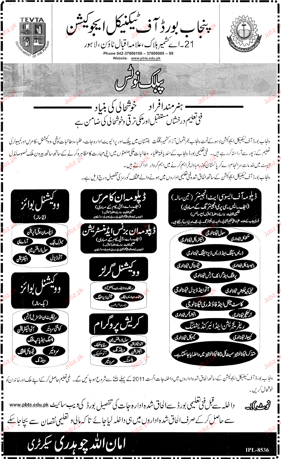 Admission Open in Punjab Technical Education in Lahore Read newspaper ad for exact details.