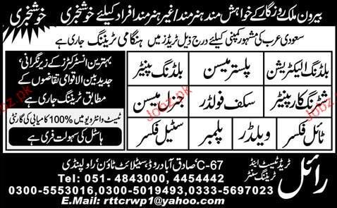 Admission Open in Royal Trade Test and Training Centre in Rawalpindi Read newspaper ad for exact details.