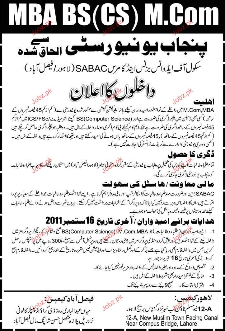 Admission Open in School of Advance Business and Commerce in Faisalabad Read newspaper ad for exact details.