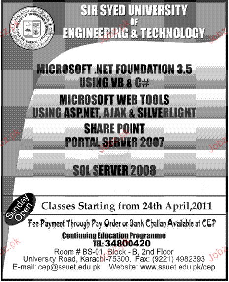 Admission Open in Different Computer Courses in Sir Syed University of Engineering in Karachi Read newspaper ad for exact details.