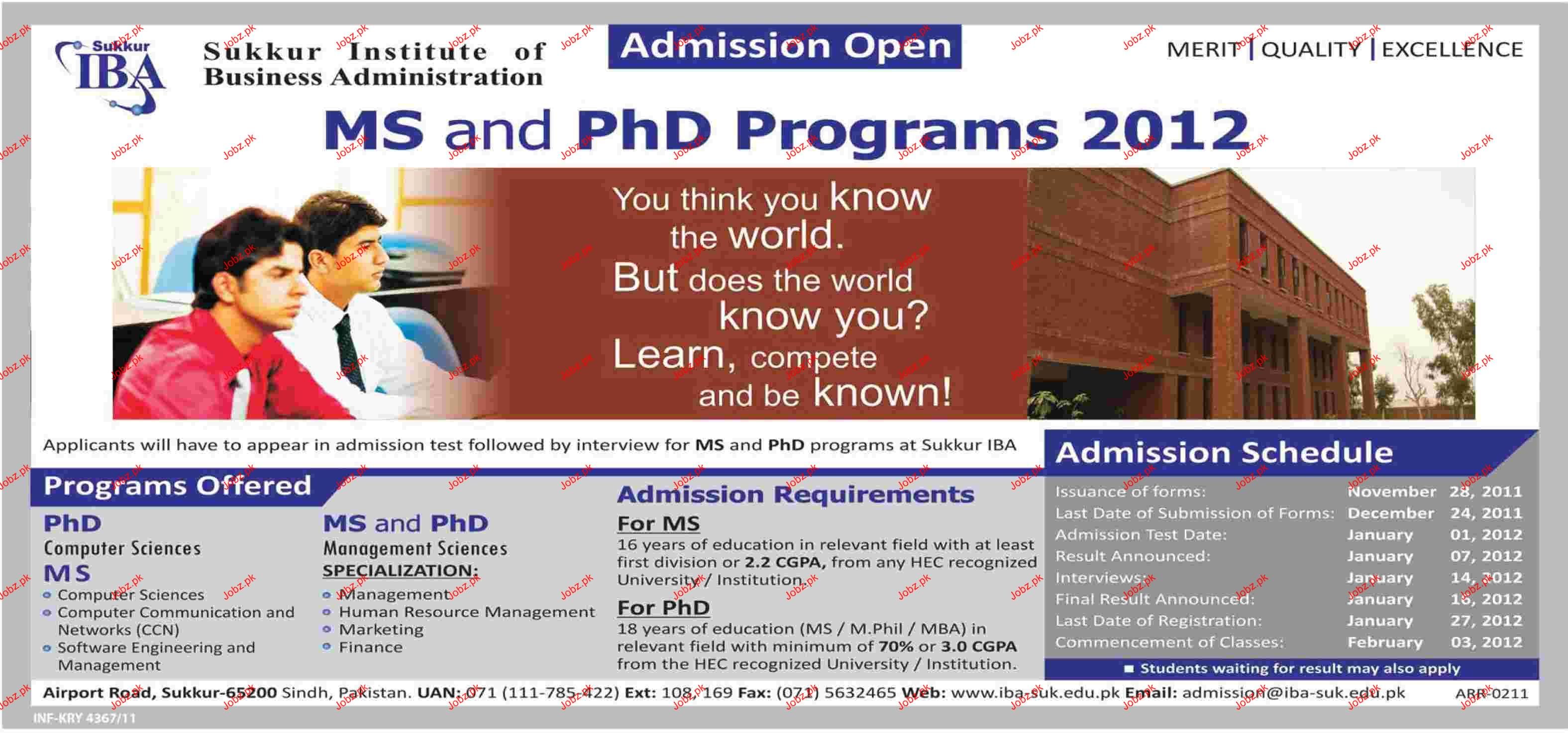 Admission Open in Sukkur Institute of Business Administratio in Sukkur Read newspaper ad for exact details.