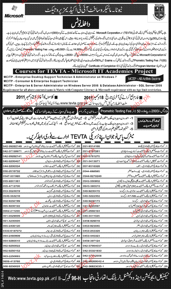 Admission Open in Technical Education & Vocational Training in Lahore Read newspaper ad for exact details.