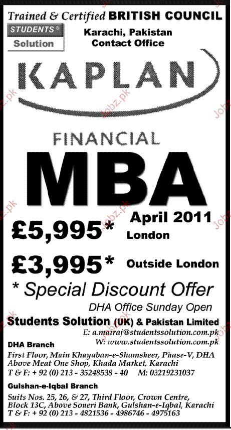 Admission Open in MBA in Trained & Certified British Council karachi Read newspaper ad for exact details.