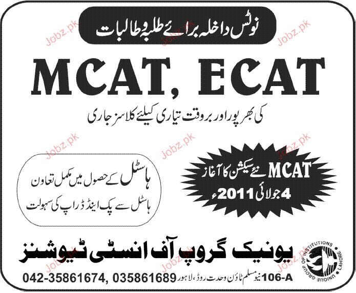 Admission Open in Unique Group of Institute Tutions in Lahore Read newspaper ad for exact details.