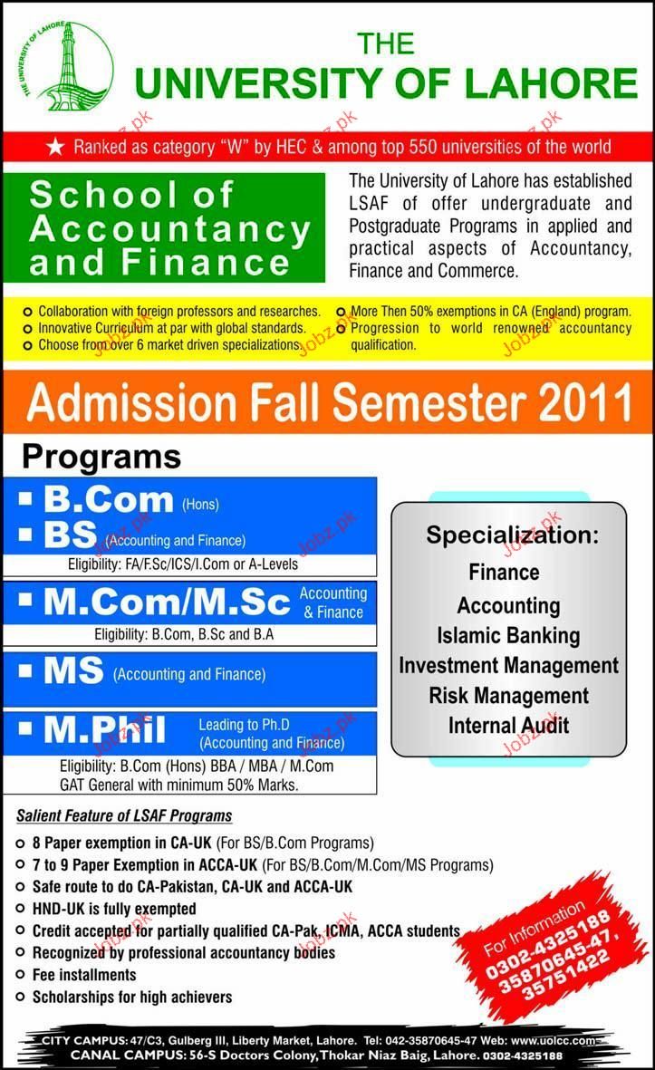 Admission Open in University of Lahore in Lahore Read newspaper ad for exact details.