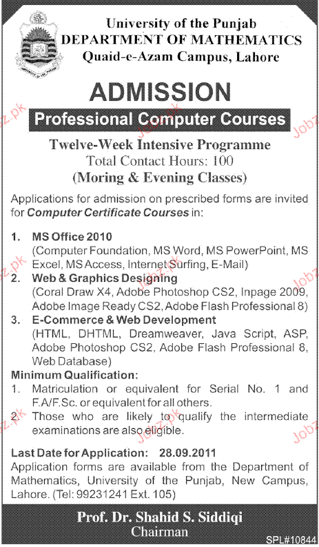 Admission Open in University of the Punjab in Lahore Read newspaper ad for exact details.