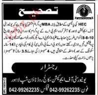 MBBA Admissions Open University of Education Lahore Read newspaper ad for exact details.