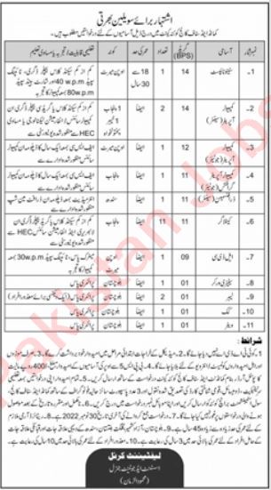 Vacant posts including cook, sanitary worker, computer operator, draftsman, computer operator graphics, steno typist, waiter, labor and ldc are announced in Command & Staff College Quetta, quetta Balochistan Pakistan as per 6 November 2022 advertisement in daily Jang Newspaper. Educational qualifications required Bachelor, Intermediate and Matric etc.