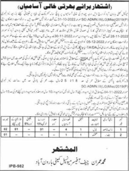 Advertisement For Jobs At Municipal Committee Haroonabad
