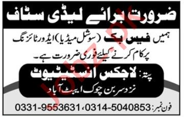 Vacancies in Private Institute Advertisement April 2019