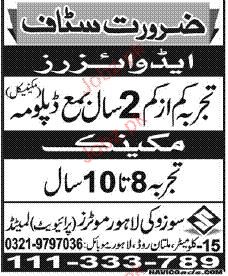Apply as per details in job advertisement. Login to view further details of how to apply via https://www.jobz.pk online.