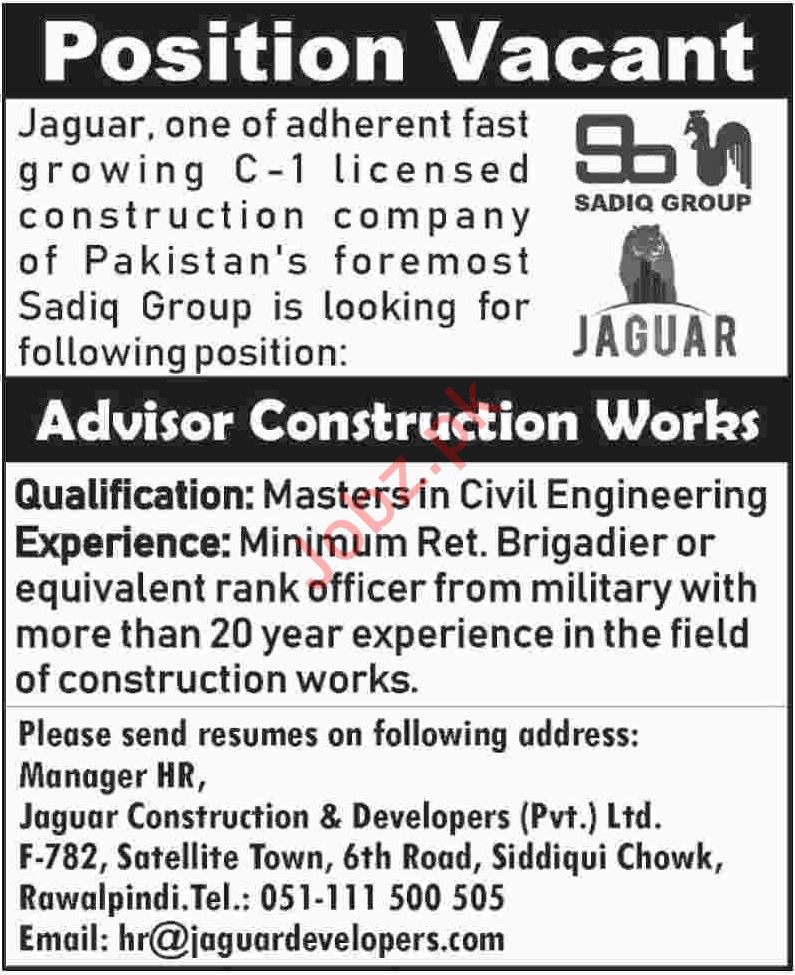 Advisor Construction Works Jobs 2018 In Rawalpindi