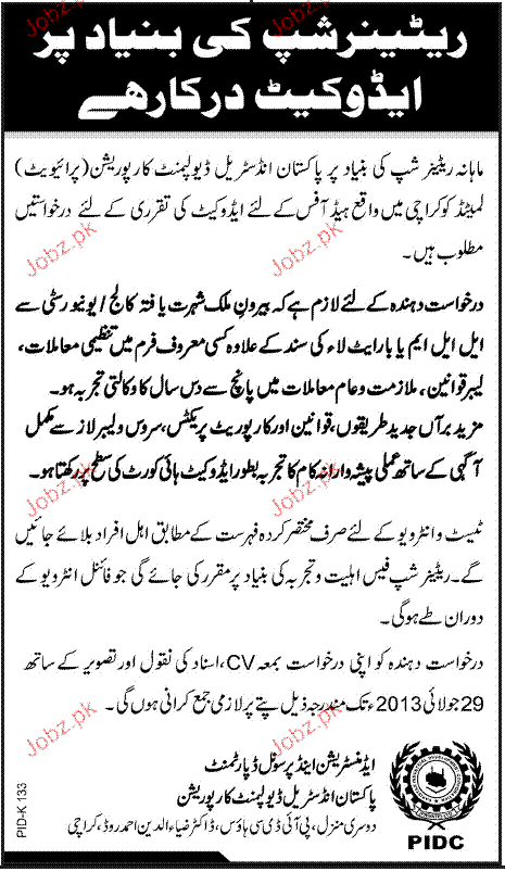 Apply as per details in job advertisement. Login to view further details of how to apply via https://www.jobz.pk online.