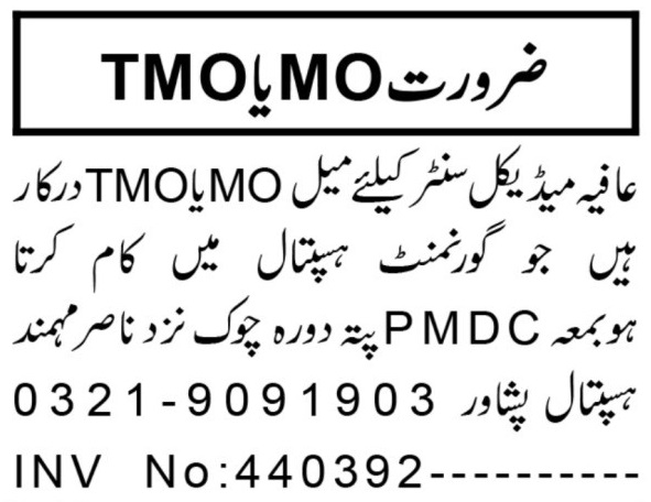 Vacant posts including doctor and medical officer are announced in Hospital Clinic Kohat Road Peshawar, peshawar Khyber Pakhtunkhwa KPK Pakistan as per 9 April 2025 advertisement in daily Aaj Newspaper. Candidates with Others and MBBS etc. educational background will be preferred.