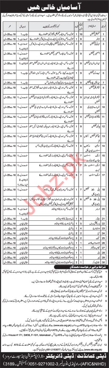 Armed Forces Institute of Cardiology AFIC / National Institute of Heart Diseases NIHD Rawalpindi invites applications from experienced and strong personnel for the posts of Mechanical Technician, Dispenser, ETT Technician, Anesthesia Technician, CSSD Technician, Network Technician, Medical Record Technician, Electrical Technician, Electro Physiology Laboratory Technician, Nuclear Cardiology Technician, Aluminum Technician, Glass Fitter, Workshop Assistant, Nursing Assistant, Biomedical Technician, Dresser, Welder, Ward Boy, Aya, Cook, Naib Qasid, Glass Cleaner, Mali, Labor and Sanitary Worker through Allied Testing Services ATS 2020.