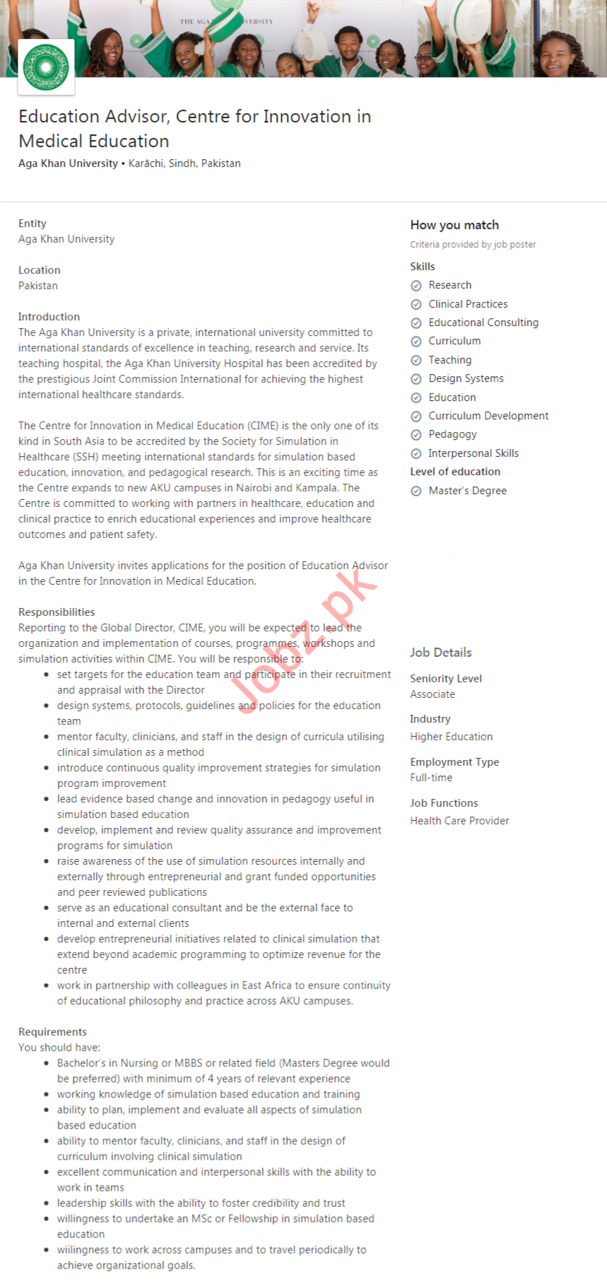 Aga Khan University AKU Karachi Jobs 2020 Education Advisor